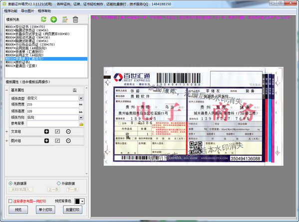贵鹤证件精灵原名贵鹤证牌合同定位打印助手,可用于定位打印毕业证书、学生证、会议出席挂牌、会员证、快递单、模板式合同等,凡是有字模板需要定位输出打印的,用这个工具均可实现。支持从EXCEL导入数据实现批量打印。软件操作简单,一次性设置好模板,将纸张类型尺寸和内容项目相关参数设置妥当,即可永久调取模板快速应用。适合打印店及机关企事业单位办公行政工作人员使用,可使工作人员彻底告别WORD对位打印的烦恼,从此实效高效率制作打印各类模板型证牌与合同等。【更新日志】