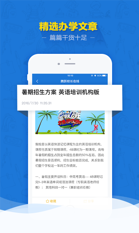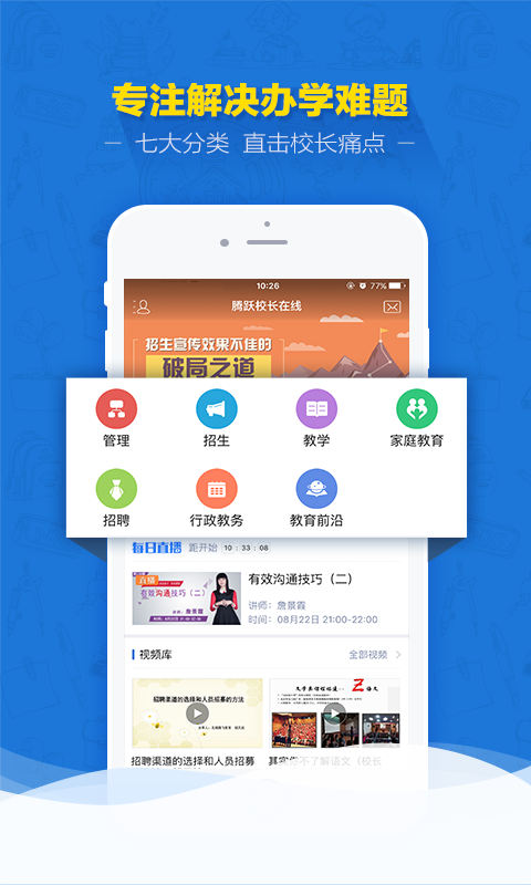 【体系化干货】招生、管理、教学、招聘、家庭教育、行政教务、前沿咨询下的办学干货,海量的招生方案,教师管理、培训诀窍,教育前沿资讯、政策解读。【每日直播】每天21:00-22:00教育行业大咖带来分享,聊一聊培训机构在办学上一些的经验,给各位校长提供借鉴和参考。