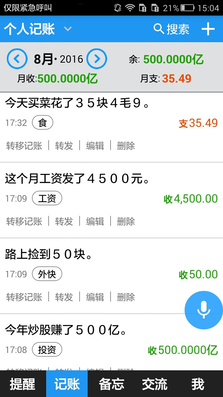 这是一款超牛的提醒、记账、备忘、聊天一体软件,可亲朋好友间互设闹铃、共同记账。操作极简单。1、想提醒?想记账?说就行,系统会自动识别分类。