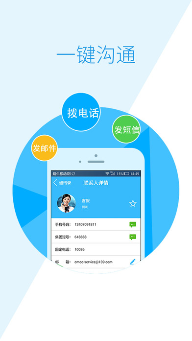 通讯录托管集团内所有授权用户的通信地址,统一托管在中国移动的服务器。