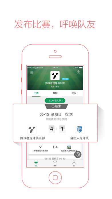 【球队管理】①一键发布比赛、报名;比赛自动提醒;