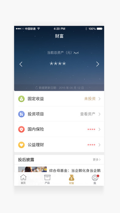 4、资产配置:您在理财上的资产配置情况一目了然