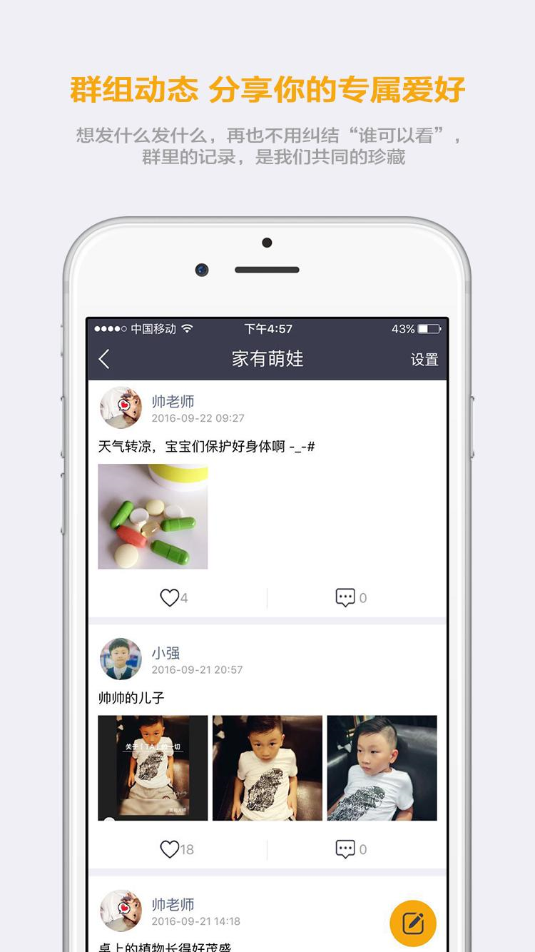 比拍是一款全新的培训班级好友视频、聊天、分享应用,你的同学、朋友、同事和家人都有独立的聊天室和朋友圈,再也不用担心隐私问题,可以畅快地秀出真实的自己!【软件特点】