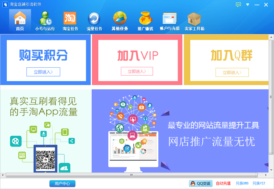 淘乐卖家工具是一款免费绿色的淘宝店铺引流软件。该工具使用非常简单,很容易上手,并且使用后可以快速的帮助淘宝卖家进行店铺流量升级,拉高淘宝店铺的流量和点击量以及关注量。