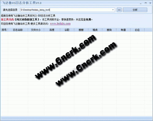 飞达鲁IIS日志分析工具,可以分析IIS日志里搜索引擎蜘蛛的访问次数