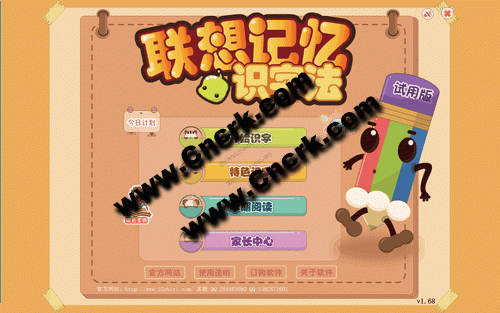 联想记忆识字 V1.68 简体中文绿色免费版 联想记忆识字是一款针对2到10岁小朋友们准备的识字软件,软件通过将难懂的汉字变成一幅幅图画,一段段动画,让孩子们能通过右脑的快速记忆来达到识字的目地。同时,通过早期阅读和互动识字,让小孩子喜欢上学习汉字的同时爱上学习,帮助从小养成爱学习爱思考的好习惯。另外,软件通过智能化的手段,能够让家长及时了解孩子的学习状况,更好的帮助孩子开发智力。同时,通过家长宝典让家长们学会科学的语言学习方式,更好得教育好自己的孩子,实现每一位家长望子成龙的心愿。