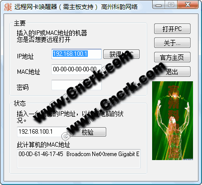 远程网卡唤醒器 V1.0.0.0 简体中文绿色免费版 远程网卡唤醒器一款功能强大方便好用的远程网络唤醒开机程序。远程网卡唤醒器只要在被控计算机的主版/网卡/电源支持“网络唤醒”并开启了这个功能(绝大多数电脑都有这个功能),利用这个程序你就可以通过网络远程启动计算机了!是网管及办公人员必备程序。可能部分杀毒误报,请用户注意判断...