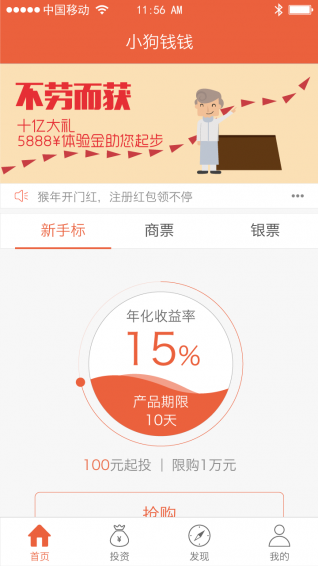 商业承兑汇票是出票企业签发的,委托付款企业在指定日期无条件支付确定的金额给收款人或者持票人的票据。”小狗钱钱“商业承兑汇票均来自于央企、国企、上市公司以及其他性质的大型企业,风险小,收益高,理财期限为1~6月,平均年化收益率为8%~10%。