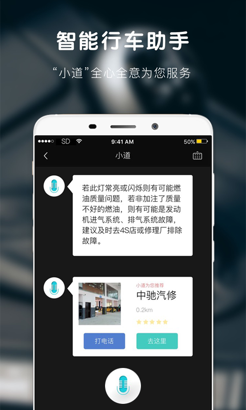 【人工智能】人工智能是上道APP为您私人订制的人工智能汽车机器人,您对着话筒发出语音指令,人工智能强大的算法就能根据您的命令提供精准的服务,定方位、查违章、报天气,甚至无聊寂寞时发出娱乐命令还有相声小品歌曲随意切听,还等什么?快来体验前沿潮流的智能生活吧!