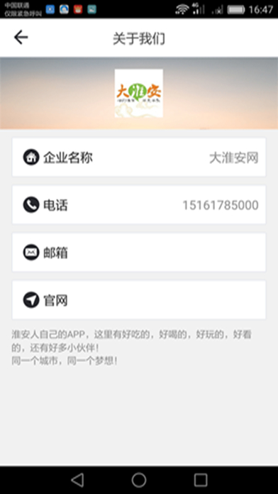 借助移动互联网、信息技术和线下服务能力,大淮安网APP为消费者提供值得信赖的本地商家、消费评价和优惠信息,及团购、预约预订、外送、电子会员卡等O2O闭环交易服务,覆盖了餐饮、电影、酒店、休闲娱乐、丽人、结婚、亲子、家装等几乎所有本地生活服务行业。大淮安网手机客户端是淮安最受欢迎的本地生活APP之一,已成为本城市消费者的必备工具。“点亮精彩生活”是我们的使命,因此我们团队的奋斗目标是:深刻理解消费者与商户需求,为其创造非凡体验和最大价值,并引领本地生活方式。
