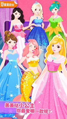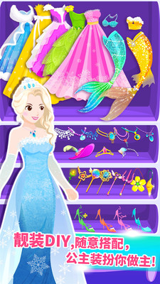 【趣味换装】海量高端优雅的裙子:五彩的美人鱼之裙、飘逸的长裙、活泼的短裙……哪一套裙子会是宝宝的最爱呢?快来试试吧!轻松换装,无限乐趣!【创意DIY】公主怎么能没有王冠呢?哇!你看,这里有超多配饰:高贵的皇冠、耀眼的项链...超多精美配饰,随心搭配,创意DIY,发挥宝宝创造力,激发宝宝的爱美的天性~