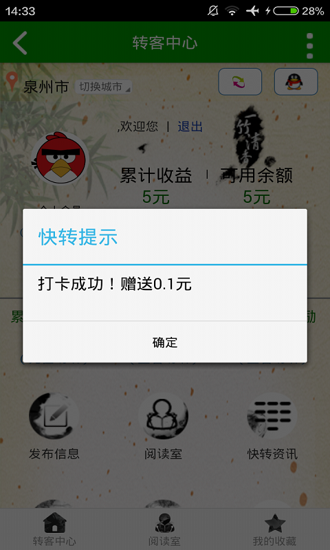 转呗是一个新型的阅读软件,读者不但可以畅想在知识的海洋中,还可以有源源不断的收益,同时您还可以邀请您的好友一同来分享知识带来的快乐和收益。大力倡导“健康阅读、轻松阅读、盈利阅读”的三读政策,让读者真正可以参与到文章中来,体验式互动分享交流,让读者成为消费商,让读者把阅读当成一种赚钱的工具,大力鼓舞了新一代年轻人的学习热劲。