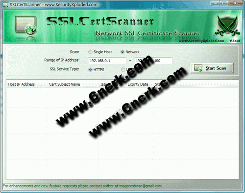 SSLCertScanner旨在远程扫描主机的SSL证书。它也可以一次扫描多台主机或主机。一旦发现了SSL证书,SSLCertScanner自动验证通过检查它的到期日期.