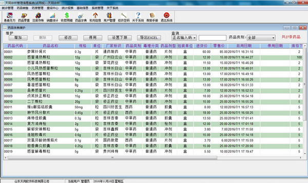 3.药品管理:药品入库支持药品名称拼音首字母查询,支持药品批次、有效期管理,支持批量入库。药品零售自动选择较早入库药品。药品总库存账目中含有预估利润管理,预估利润管理能让您随时掌握药品大概利润,为您进货更有效的分析数据,哪种药品赚的多、大概赚多少钱,天同诊所管理信息系统让您完全了解。诊所缺少什么药、什么药库存不足、欠供应商多少钱、什么药即将过期,系统统统都有预警提示。