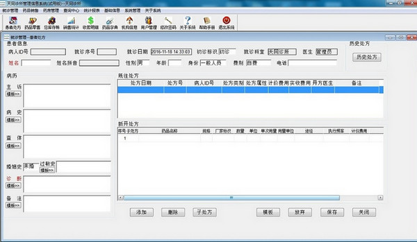 1.就诊管理:就诊管理结构清晰,傻瓜化操作。调用药品支持拼音首字母查询,开处方时可以调用历史处方(历史就诊信息)、处方模板、主诉模板、病史模板、查体模板、过敏史模板、疾病诊断库以及备注说明模板,大大提高了开处方、写门诊病历的速度。作为医生,时间久了就记不住历史患者的就诊过程了,天同诊所管理信息系统可以随时调用历史患者的就诊病历和处方,随时了解就诊过程,不至于尴尬;能动态的观察病人,有效的防止误诊。写病历、开处方、保存、划价、打印收据、打印处方整个流程一气呵成、简单易用,无需手工书写。2.收费发药:收费发药功能模块能够自动打印收据、自动累计、找零。支持多种收费方式,收费项目自定义设置。此外该系统具有强大的查询和统计功能,能及时了解您的经营状况,使您的管理更便捷、轻松、快捷、高效、无忧。