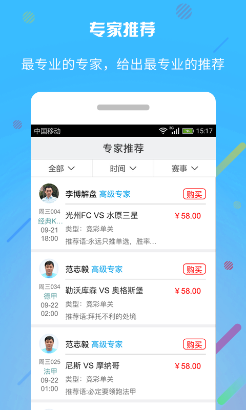 专家团队:体育名家,央视记者,足球专家齐聚宝盈彩;专家推荐:五大联赛,经典赛事一网打尽,足球赛事预测及比分预测;