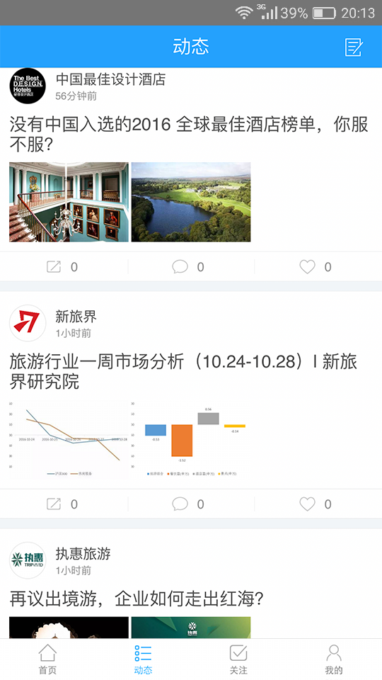 [海量内容源]聚合超过1000家以上旅游媒体,热点旅游资讯一手掌握.24小时刷新不停,让你的阅读更高效![在动态板块]通过在旅板发表文章分享你对旅游行业的见解,关注旅游业资深人士建立你在旅游圈的人脉,是旅游版的Linkedin.
