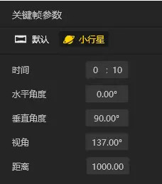 step03.如果需要精确调整画面,可以选中该关键帧,在左下角的关键帧参数框中修改数据;(可以修改时间,水平角度,垂直角度,视角,距离)