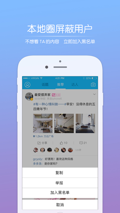 4.【完善】本地圈添加屏蔽功能,讨厌的人通通不看