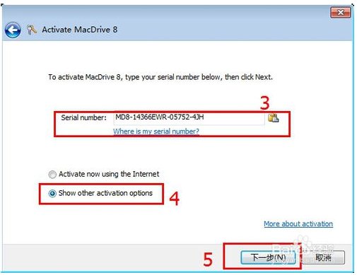 粘贴到Serial number 里面,点Show other activation options ,再点下一步