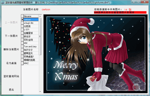 蓝软基地原创软件下载down.bbs156.cn之蓝软基地壁纸管理软件可以自由灵活的更换、添加、删除桌面壁纸,通过弹出鼠标右键能够添加图片到软件数据库中。