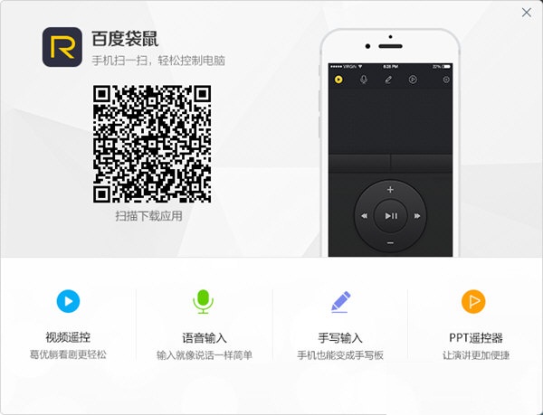 3、打开手机百度袋鼠扫一扫电脑的二维码即可实现控制。