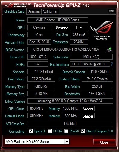 3、检测GPU核心、着色器和显存运行频率,显存类型、大小及带宽。