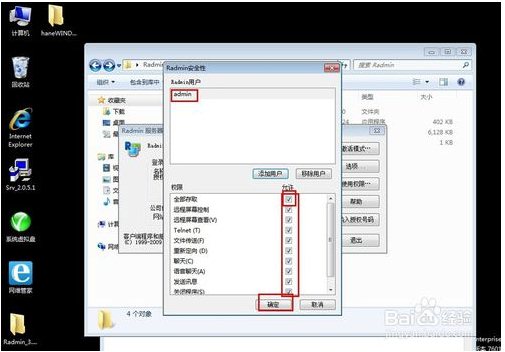 经过上面的配置后,我们在继续配置下面几步就可以用了,点击“使用权限”,我们增加一个可以在控制端用来登录的用户,在用户名和密码框中填写自己比较好记的用户名和密码,防止忘记。。然后在权限这里,根据需要可以选择权限,我一般是全部权限,这个可以根据不同来设置