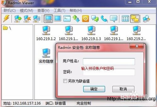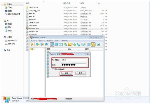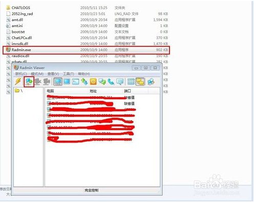 现在,已经全部配置完毕,现在我们在控制端运行Radmin.exe文件,现在可以看到界面,点击图片中带“+”的那个图标,然后在出来的菜单中填写服务端的IP地址和端口,填写完毕后,在双击IP地址,会出来让输入用户姓名和密码,直接输入步骤四中创建的用户和密码,就可以登录了