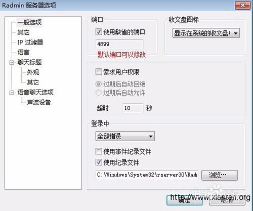 Radmin服务端的配置主要就是账户控制,也就是“使用权限…”的配置,“选项…”里面的端口号那些,可以修改,以达到迷惑入侵者的目的。比如关闭系统自带的3389远程登录,Radmin的端口修改为3389,还是有一定的安全作用。