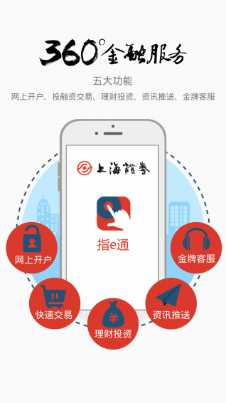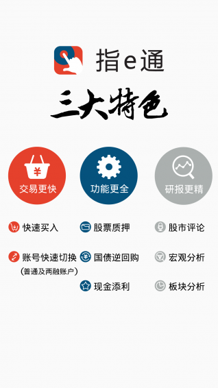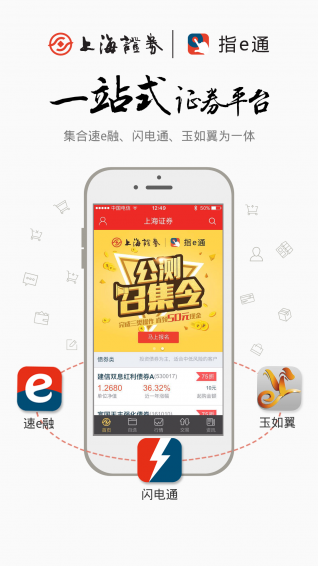“指e通”品牌由上海证券推出,致力于为用户提供“指尖金融e点即通”的一站式移动金融体验。“指e通”的品牌架构可用“全”、“快”、“微”三个字来概括,“全”即“PC全业务”,包括官网、客户端和网上营业厅,为用户提供PC端最齐全的业务服务;“快”是指“APP快应用”,通过“闪电通”、“速e融”、“玉如翼”等APP为客户带来快捷便利的应用体验;“微”是“微信微服务”,意指上海证券业界领先的微信服务平台,包括微信服务号、订阅号和企业号,提供用户随时随地随身的服务体验。通过“全、快、微”三位一体,“指e通”为用户提供一站式的指尖金融服务。【更新日志】