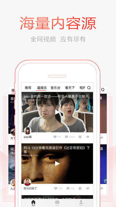 【内容齐全】内容超全的视频 app。搞笑、新闻、热点、综艺、明星、美女、海外、红人、财经、音乐、相声、小品……你想看的,都在这里。24 小时刷不停,填充你所有碎片时间。