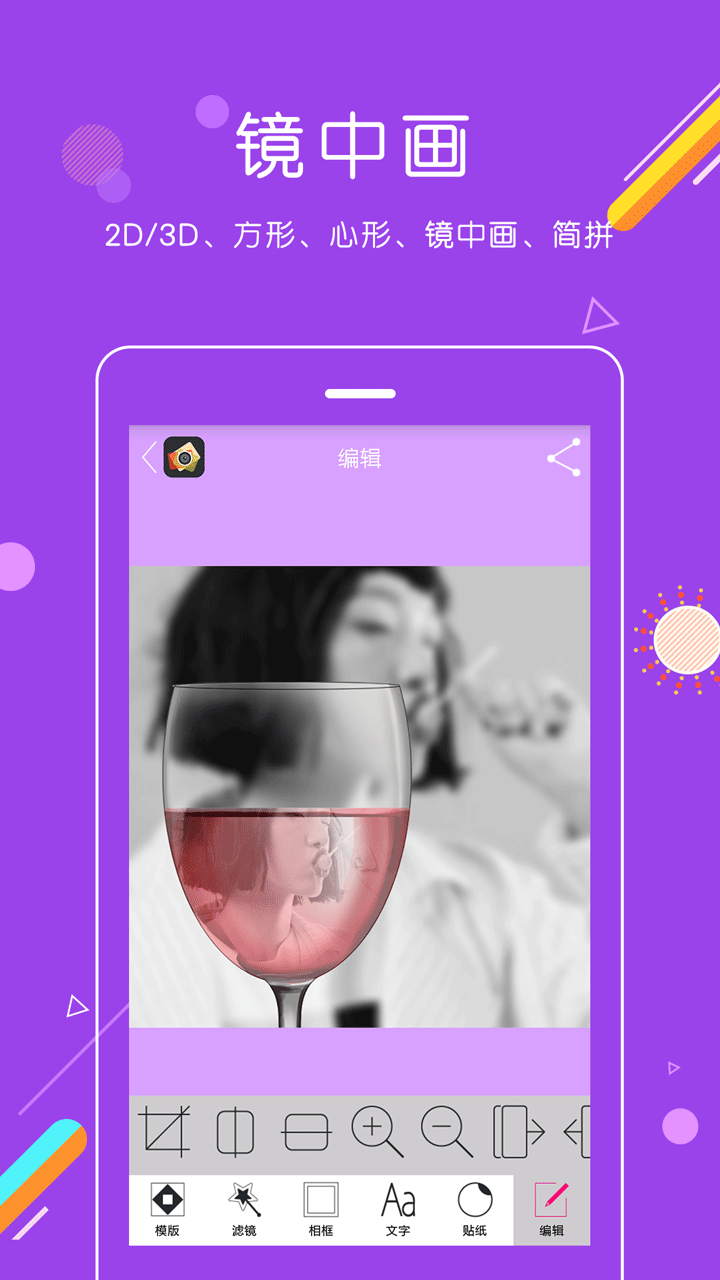 【海报拼图】可以选择自由拼图或模板拼图,添加模糊、阴影、渐变、精美相框、海量背景图案纹理
