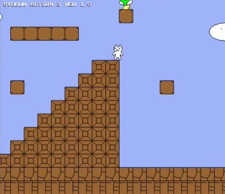 依然继承了猫里奥的特点,各种看起来平淡无奇,实际上满是死路的坑爹陷阱。在这里,不要以为蘑菇是可以吃,路是平的,洞是能钻的,坑是可以跳进去的。或许你玩超级玛丽曾经死过很多次,但是进入猫里奥,你就得做好加上n次方的准备了。