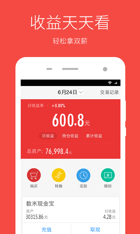 数米基金宝是一款完全免费的基金理财软件,集基金交易、收益管理、净值及行情查询、筛选分析等多项实用基金分析管理功能于一体。无广告、无插件,为用户提供纯绿色理财软件。数米基金宝是一款基金超市,为广大基金用户购买基金方便快捷,集合了全国1500多支基金可同时再线交易。在原来的数米基金宝PC版基础上,进行研发新的手机客户端应用,操作简单,方便快捷,享随时随地快速交易、查询。