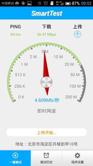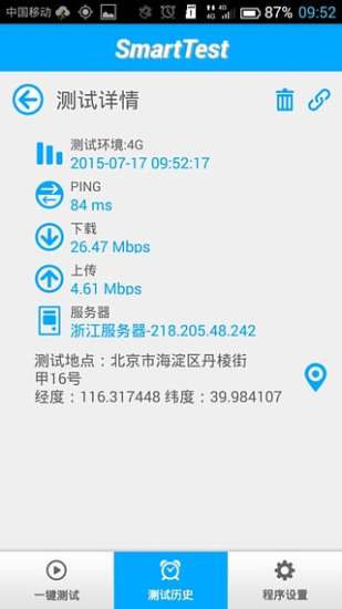 中国移动smarttest软件是一款移动公司官方推出的宽带网速测试软件,,想要吐槽您家里的宽带网速,您可以参与家庭宽带品质众测活动,利用smarttest对家里的网络进行详细的测试,并且说不定还会获取额外的奖励,网络好不好你说了算。【软件特色】