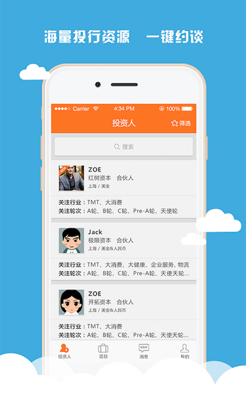 方创APP是由方创集团推出的移动投融资服务,致力于为创业者和投资人提供一个高效、快捷、便利的移动投行服务体验,让投资人一手掌握投融资信息,让创业者随时了解投资进度。