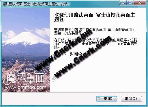 魔法桌面原创xp、vista、windows7通用版富士山樱花主题,主题的开始菜单结合了樱花的颜色和富士山雄伟,看上去轻盈又赏心悦目,有一丝春天的温暖感觉。