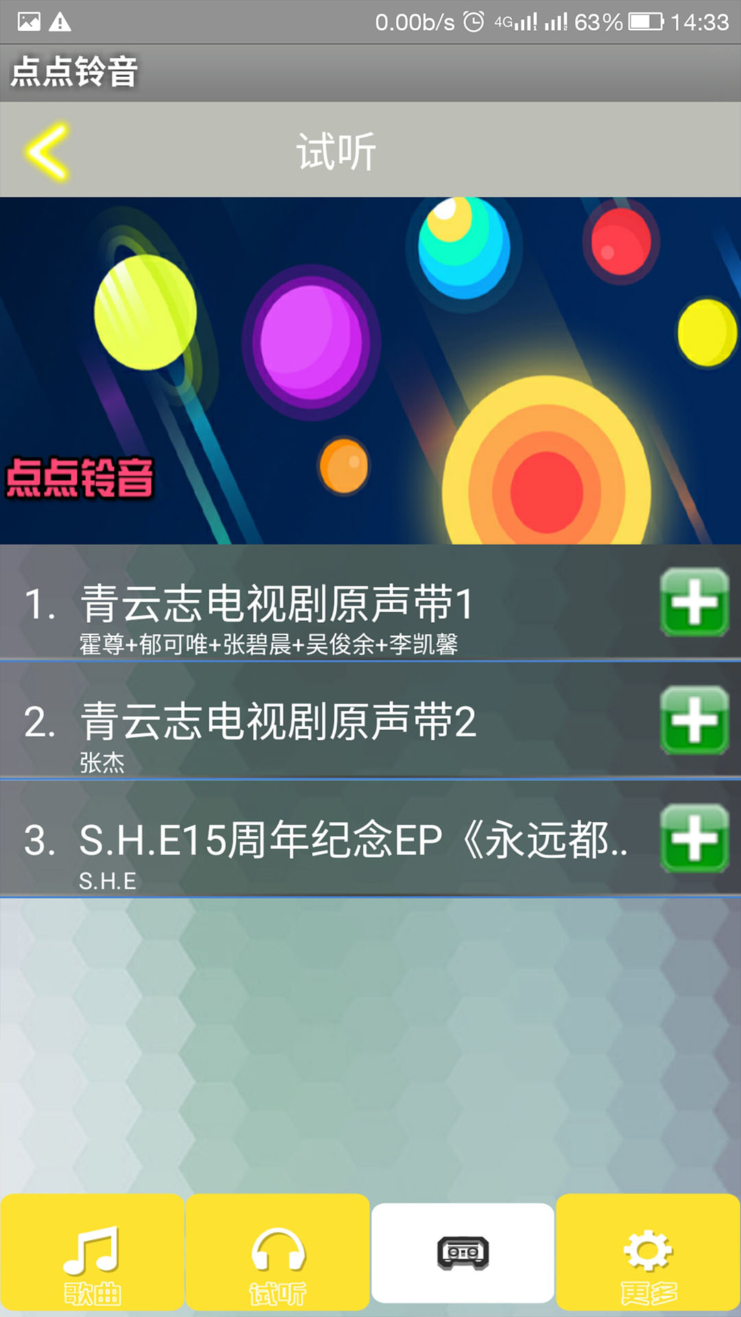 点点铃音为大家提供在线音乐视听、本地音乐播放,包月业务订购与退订,数字专辑订购,让您随时随地都能享受音乐带来的乐趣