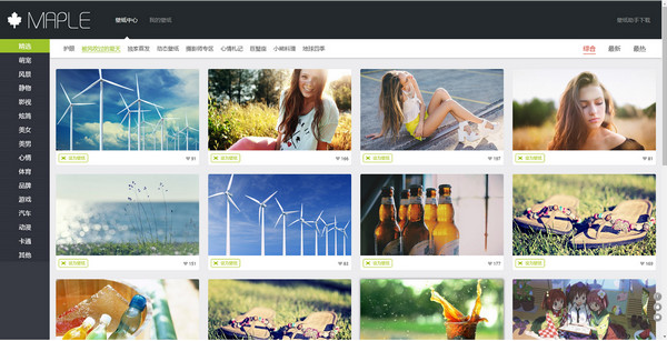 枫木壁纸”是深圳云汇天下科技有限公司推出的主打产品,包含风景,美女,动漫,汽车,体育,游戏等各式分类,各类图片,应用尽有。枫木壁纸拥有智能裁剪功能,可自动适配用户电脑分辨率进行裁剪,一键操作,即可将高清图片设为壁纸。