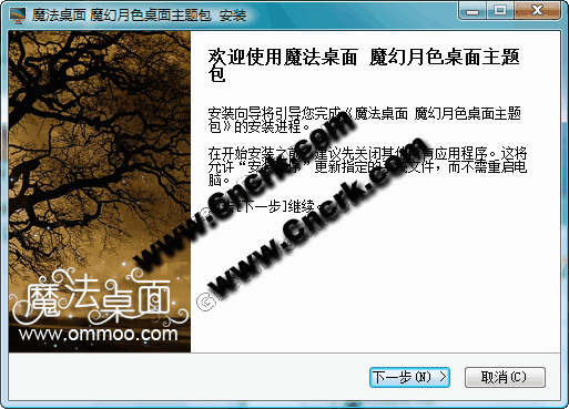 魔幻月色电脑桌面主题 简体中文官方安装版 本主题用昏黄的光线,勾勒出日月共存下一棵大树的剪影,很梦幻得将月亮放大数倍,用熠熠的星光衬托出来,主题设计也采用黑色和深黄的颜色,将月光衬托的更加梦幻,更加有魔力。能看得见月亮的夜晚,一定不会很黑,有一些月的光辉,月光如水,清,澈透明,朦胧中带有一些生气。幽淡的夜幕背景下,云月相逐,相映成趣。