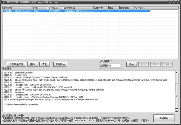 该工具是超时代软件公司专为大黄蜂视频加密系统软件开发的。由于大黄蜂视频加密系统对原始视频文件的格式要求比较严格,目前能支持绝大多数的主流编码,其中对MP4格式支持得最佳。如果视频加密失败,或者加密后打开不了,则您需要先使用本工具对视频进行转换,转换成功后再进行加密。本工具也支持任意视频的转换,可以把任意视频转换成MP4格式,转换后的视频体积将被压缩处理,保持原清晰度的情况下,视频体积更小。