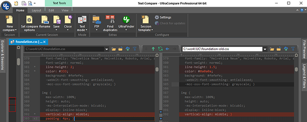 UltraCompare 可以实现文本对比,二进制文档对比,以及实现进行对比的文档间的不同点的整合。你有一些文件夹需要进行对比吗? UltraCompare也可以实现文件夹对比: 包括当地/网络目录对比,压缩文档对比和FTP对比。UltraCompare支持自动简单的文件夹同步化,而且也支持复制文档finder。