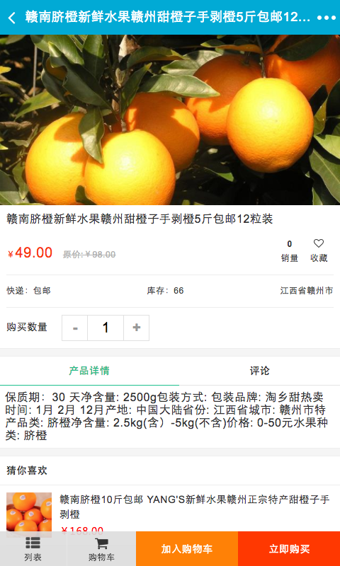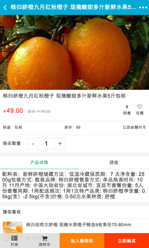 赣南绿色脐橙app集中了等产品供您购买,入驻企业可以在平台中添加您自己的产品;同时平台中也可以浏览各种脐橙行业动态,实现了客户购物、查询订单、搜索商品、行业资讯、产品评价、企业会员注册登录、广告位、招商开店等多种功能。网站以便捷的浏览方式、强大的应用功能,最新的资讯信息,为广大客户展开了一个丰富的脐橙行业画卷,时时刻刻的为您更新,让您爱不释手。欢迎大家前来下载使用赣南绿色脐橙app。您的满意是我们最大的回报,我们将竭诚为您服务!