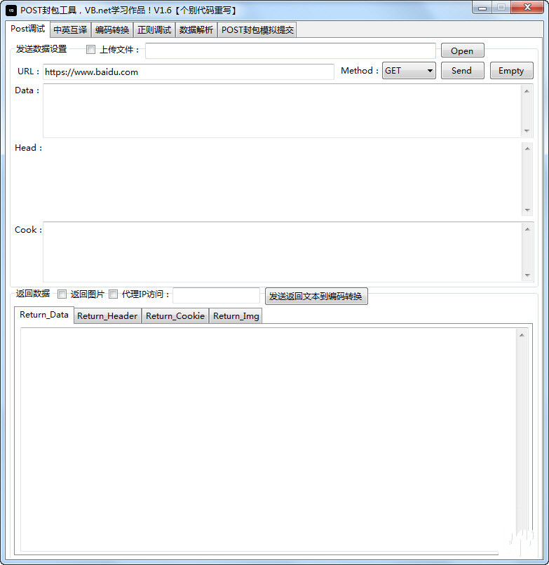 1、Post请求提交(GET、POST),包含文件、图片上传示例2、中英互译(调用百度翻译接口)