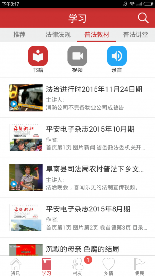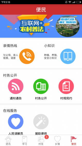村里是以行政村为单位,利用移动互联技术,以农村普法为基础,融合农村特性,为村民提供综合性服务的APP平台。农村普法平台:建设法律知识数据库,并运用“寓教于乐”的典型案例开展农村普法,使法律意识在潜移默化中深入人心;
