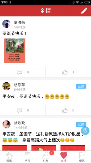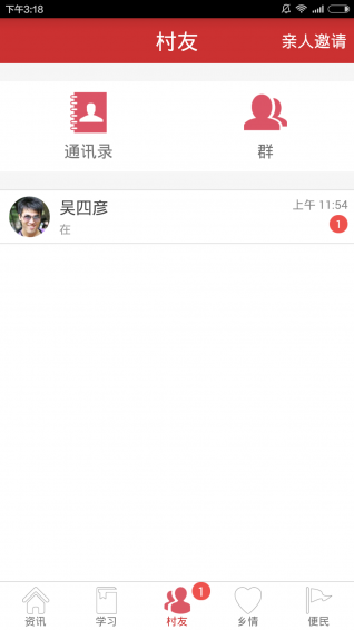 村民交流平台:囊括全村村民,形成村级社区,提供村民之间即时通讯、话题讨论和互相帮助渠道。