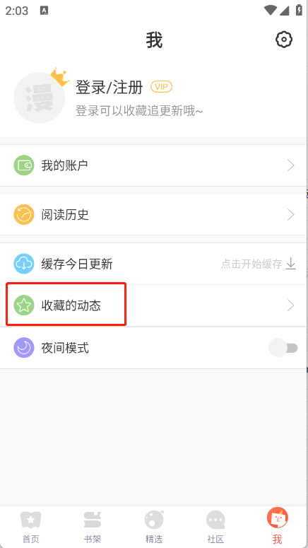 3、您可在我的页面点击“收藏的动态”,查看已收藏的漫画。