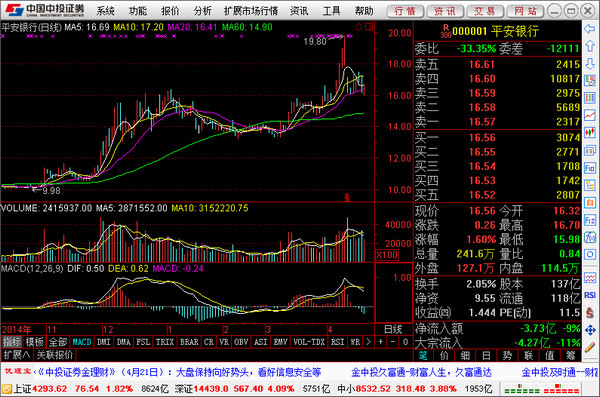中投证券合一版提供前所未有的分析工具,让用户在技术分析的天地里尽情地展示个人的智慧。精确复权,功能强大. 独一无二的精确自动复权处理,保证技术分析绝对的连续!除权时精确考虑送股、配股和分红对股价的影响,使技术指标分析更准确、更完整。支持所有周期的复权,支持前复权,后复权,而且支持权息数据库的维护和显示,进一步消除除权对走势的影响。