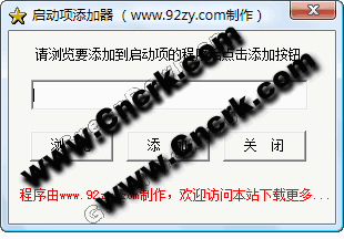 启动项添加器 V1.0 简体中文绿色免费版 现在网吧里用的很多防病毒为了系统安全都把开始菜单里的启动项屏蔽了,不能往里添加东西了,但有些朋友又不懂得如何往注册表里添加程序启动,或觉得在注册表里添加启动太麻烦了,所以特别制作了这个小程序,可以很方便的把任何程序直接添加到开机启动里